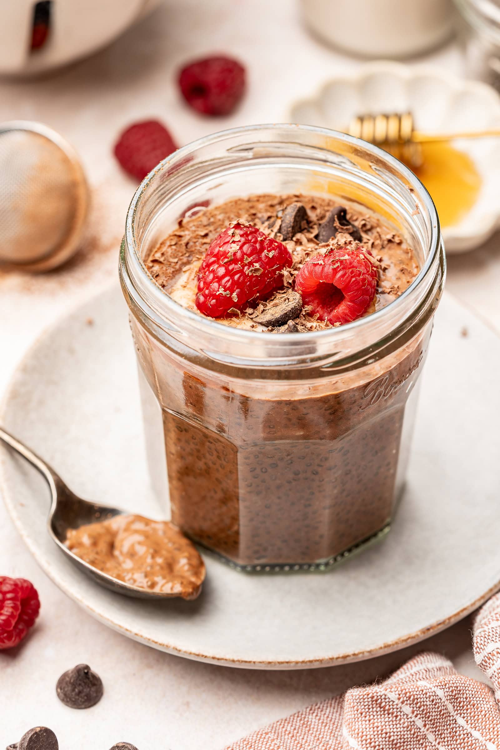 - Chocolate: Drizzle melted chocolate or sprinkle chocolate chips for a more dessert like chia pudding.